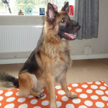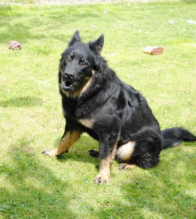 We adopted brothers, Alpha (nee Chelsea) and Omega (nee Buster) from Vigil GSD Rescue in October 2012 when they were nearly 1 year old. After 2 months we returned Omega to Vigil as having both brothers in the same household was causing too many anxiety problems (littermate syndrome). This broke our hearts to take Omega back, but we knew they needed to be separated and hoped he would find a new, loving forever home. Alpha has given us over 12 wonderful years of joy and we sadly lost him 20.3.25 aged 13yrs 4months. Alpha now over Rainbow Bridge